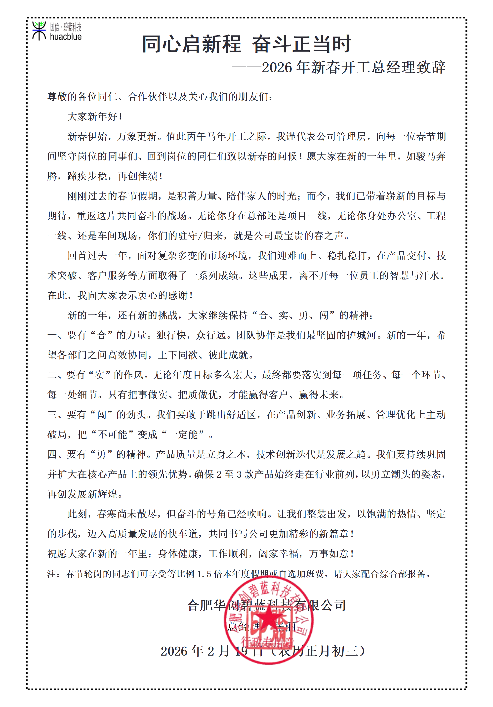 同心启新程 奋斗正当时 ——2026年新春开工总经理致辞